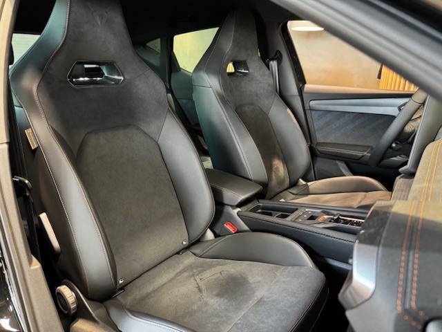 • ✔️ Design intérieur Dynamic - Sièges baquets suédine Noir Asphalte avec poinçonnage et surpiqûres cuivrées - Logos CUPRA estampés sur les appuie-têtes - Planche de bord noire texturée avec inserts Dark Alu - Contre-portes suédine noire avec poinçonnage cuivré - Conducteur : siège électrique, dont réglage lombaire, à mémoire - Passager : réglage manuel de la hauteur et lombaire - Conducteur + passager chauffants