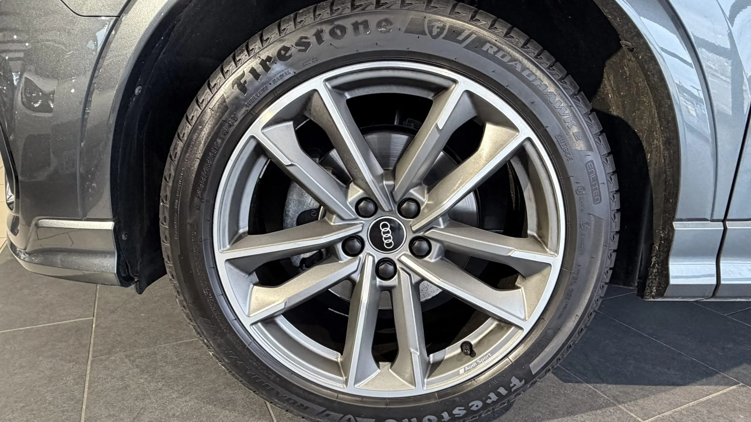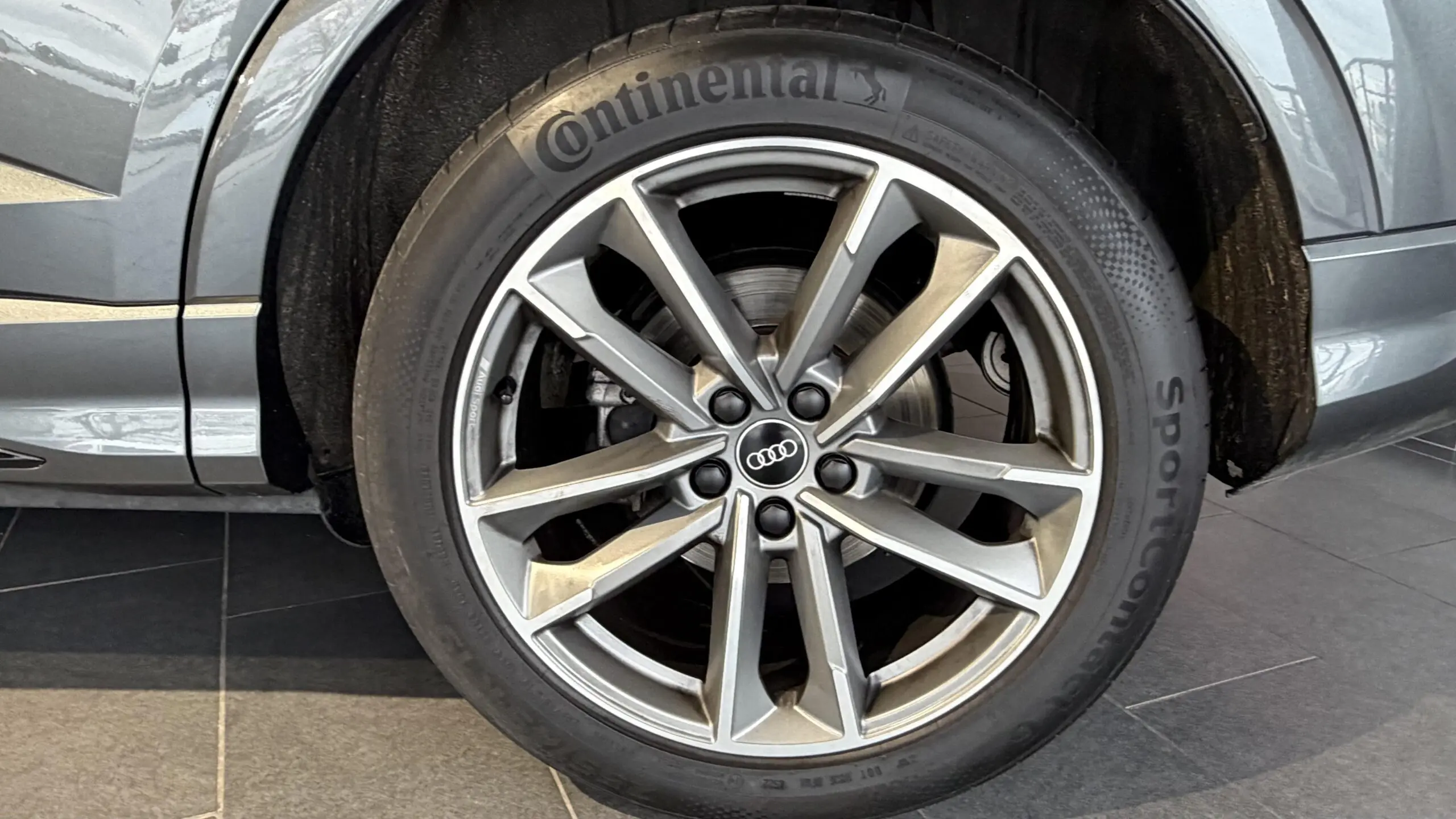 - ✔️ Jantes en aluminium coulé 19" Audi Sport 5 branches doubles, finition titane mat, polies brillant 8.5Jx19", pneus 255/45 R19