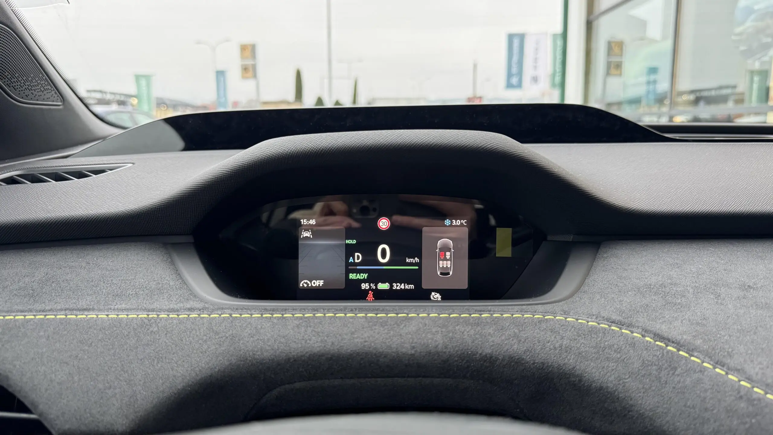- ✔️ Volant 3 branches sport en cuir multifonctions chauffant avec palettes, détection des mains et badge RS