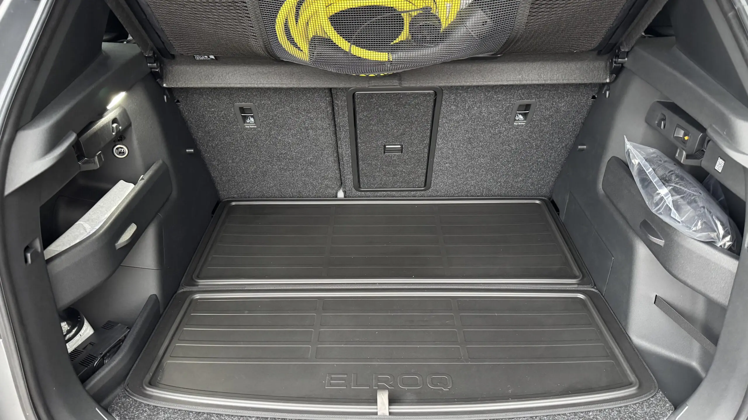 - ✔️ Couvre coffre avec filet de rangement pour câble de recharge