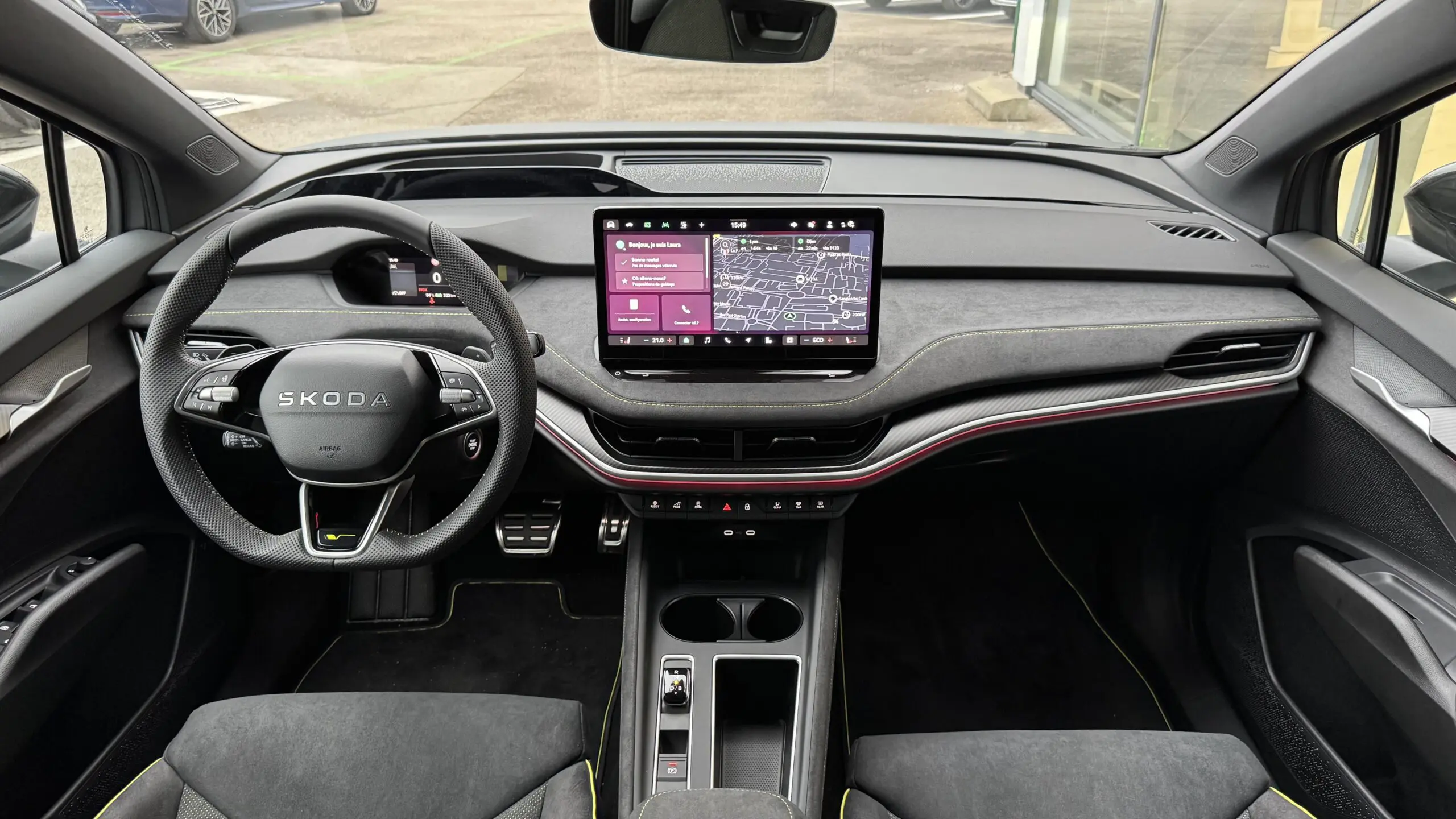 - ✔️ Eclairage dambiance intérieur personnalisable (tableau de bord, contre portes AV/AR et éclairage aux pieds av/ar) incluant le logo daccueil Skoda projeté sous les portes AV